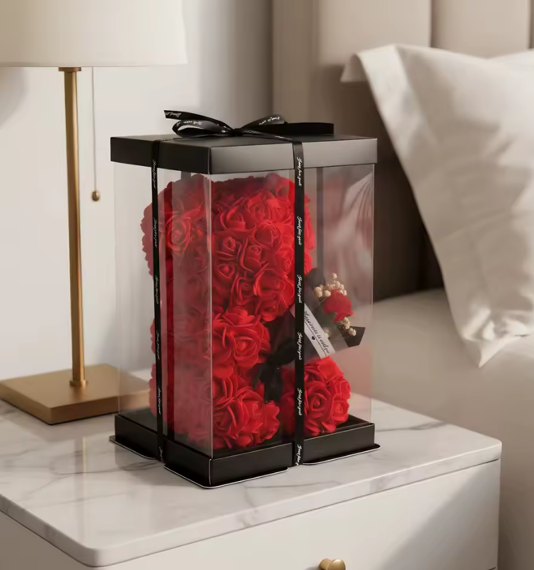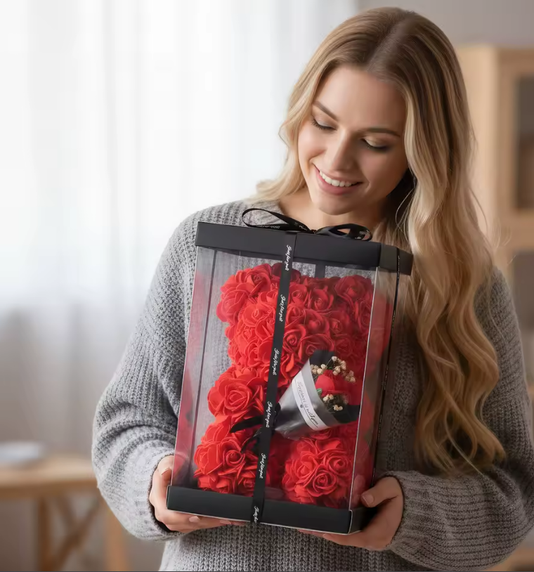 1pc 25cm Rose Bear with flower bouquet Artificial Foam Flowers Bear Romantic Creative Gifts For Valentines Day Anniversary Gift
